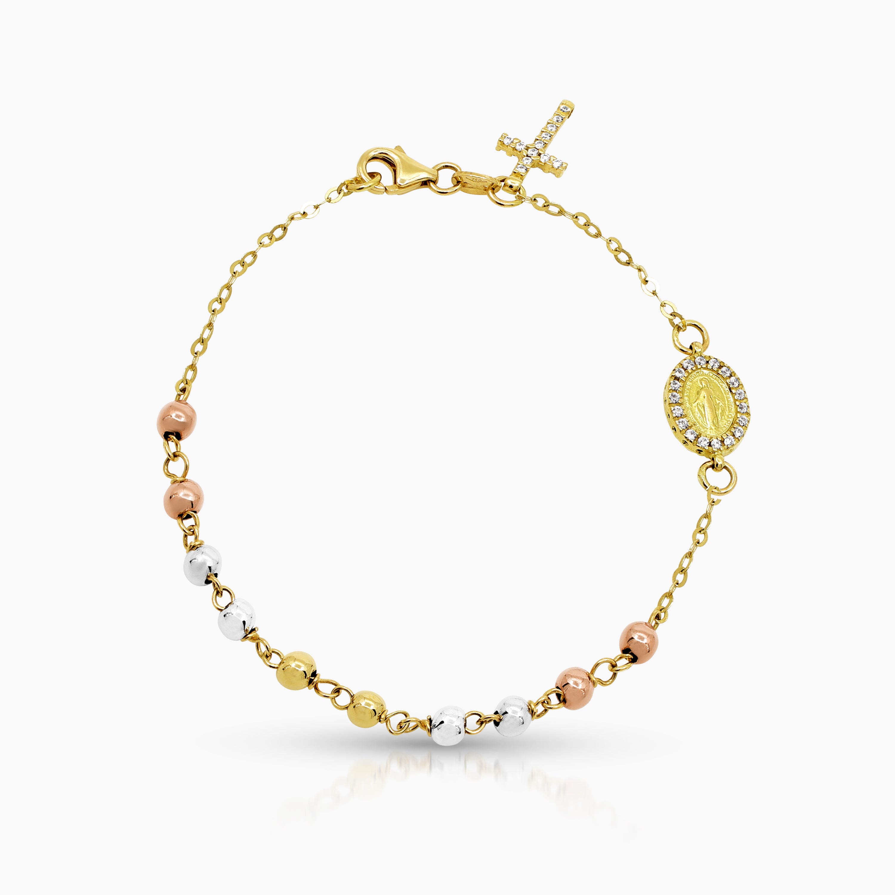 TRI-COLOR MARY MIRACULOUS BRACELET IN (ITALIAN) 18K YELLOW, WHITE AND ROSE GOLD