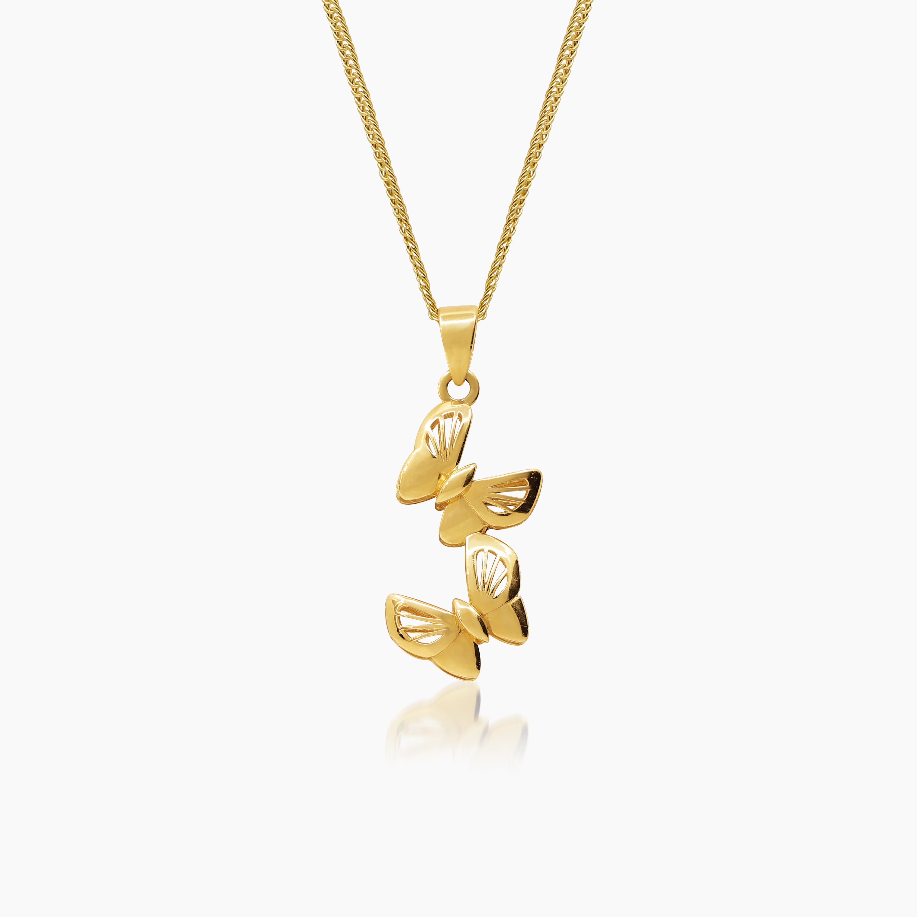 TWIN BUTTERFLY LADIES NECKLACE AND PENDANT IN (SAUDI) 18K YELLOW GOLD
